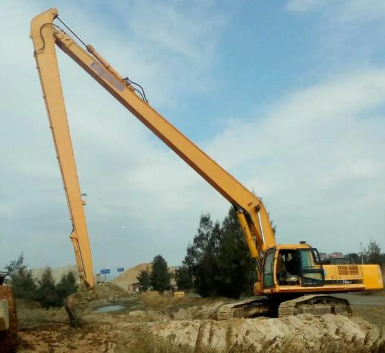 1.如果长臂挖机施工长时间在倾斜的地面上反复行走,突然转弯,链节的侧面会接触驱动轮的侧面引导车轮,从而增加磨损程度,因此应该避免在倾斜的地形上行走,并尽可能避免突然转弯可以防止长臂挖机施工磨损。